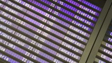 ▲ 현지시간 3일, 독일 뮌헨 공항의 화면에 드론 가능성으로 인해 공항 운영이 중단된 후 회항 및 취소된 항공편이 표시되어 있- 2025.10.05 04:19