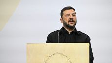 (브뤼셀=연합뉴스) 정빛나 특파원 = 볼로디미르 젤렌스키 우크라이나 대통령이 2일(현지시간) 유럽 40여개국 정상 앞에서 러시- 2025.10.03 00:46