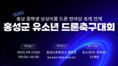 [박재춘 기자] 충남 홍성군은 내달 13일에 '2025년 홍성군 유소년 드론축구대회'를 광천읍 충남드론항공고등학교 체육관에서- 2025.08.14 18:10