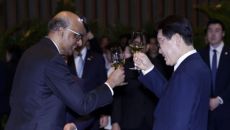 李, 트럼프·김정은 만났던 호텔서 "한반도 평화 노력 지지 믿는다"