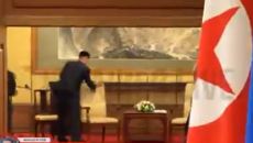 ‘김정은 DNA 닦아내기?’···북 수행원, 회담 후 의자·테이블 등 청소