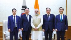 (서울=연합뉴스) 김지연 기자 = 김부겸 전 국무총리를 단장으로 하는 대통령 인도 특사단이 인도 뉴델리를 방문해 나렌드라 모디- 2025.07.18 21:48