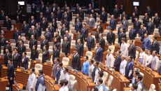 1일 서울 여의도 국회 본회의장에서 정기국회 개회식에 참석한 국회의원들이 애국가를 제창하고 있다. 이날 더불어민주당 의원들은- 2025.09.02 03:00