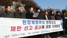 ▲ 지난 2월 11일 강원 춘천지법 앞에서 열린 현장학습 사고 인솔 교사 선고 관련 기자회견에서 강주호 한국교원단체총연합회 회- 2025.11.14 11:17