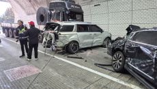 천안논산고속도로 차령터널서 8중 추돌사고…9명 다쳐