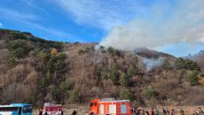 (영월=연합뉴스) 강태현 기자 = 12일 오후 3시 14분께 강원 영월군 상동읍 공군 사격장에서 발생한 불이 산으로 번져 약- 2025.11.12 17:27