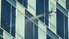 드론 띄워 건물 외벽 청소…"추락 사고 걱정 마세요"