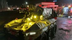 (음성=연합뉴스) 김형우 기자 = 30일 충북 음성에서 발생한 생활용품 제조공장 화재 현장에 '무인 소방로봇'이 투입됐다. 지- 2026.01.30 20:30