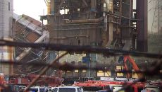매몰 7명 수색…60m 보일러 타워 붕괴 당시 영상 보니