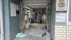 ▲ 피의자 A씨가 차량으로 돌진해 파손된 관리사무소 충남 천안에서 층간소음 갈등을 빚던 이웃을 살해한 사건과 관련, 두 이웃- 2025.12.05 12:26