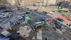 대형 천공기가 도로에 '쿵!'…시민 3명 부상