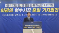 더불어민주당 이광일 전남도의회 제1부의장이 23일 여수혁신지원센터 2층 대회의실에서 기자회견을 열고 여수시장 출마를 공식 선언- 2026.02.23 17:40