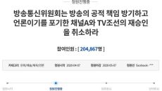종합편성채널인 채널A와 TV조선 재승인을 취소해야 한다는 청와대 국민청원이 20만명 이상 동의를 얻었다. 20일 이들 매체는- 2020.04.20 07:29