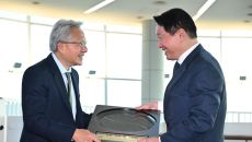 15년 만에 한국을 찾은 젠슨 황 엔비디아 최고경영자(CEO)가 숨가쁜 1박 2일 일정을 소화하고 떠난다. 이재용 삼성전자 회- 2025.10.31 21:35