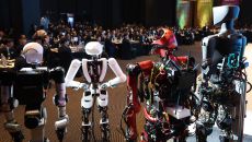 "어느 쪽이 이길까" 관람객 시선 훔친 휴머노이드 로봇 복싱 경기
