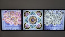 영화 필름을 자르고 붙여 색유리처럼 사용하는 김범수 개인전