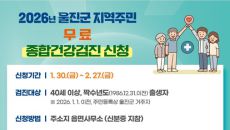 울진군(군수 손병복)이 2025년에 이어 올해도 지역주민을 대상으로 종합건강검진을 실시한다. 대상자는 울진군 거주 40세 이상- 2026.01.28 15:08