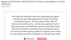 10년 간 닌텐도에 콜 오브 듀티 제공, MS 계약 체결 발표