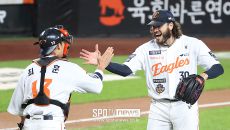 [서울=뉴스핌] 박상욱 기자 = 독수리가 원투펀치로 대전구장에 원정 온 사자에 KO승 거뒀다. 독수리는 19년 만에 한국시리즈- 2025.10.24 21:57