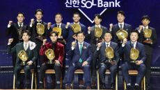 ▲ 2024년 골든글러브 시상식 기념사진 올해 프로야구에서 포지션별 가장 뛰어난 활약을 펼친 선수에게 주는 골든글러브 수상 후- 2025.10.09 13:44