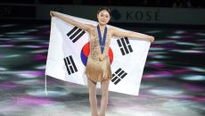 [mhn포토] 피겨여왕 김채연, 성조기 날개 달고 태극 금메달