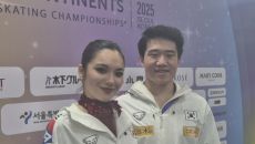 (서울=연합뉴스) 김경윤 기자 = 귀화 후 출전한 첫 국제 메이저대회에서 성과를 낸 피겨스케이팅 아이스댄스 임해나-권예 조는- 2025.02.22 21:37