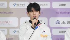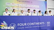 [OSEN=박준형 기자] 18일 오후 서울 목동 실내빙상장 앞 기자회견장에서 2025 ISU 사대륙 피겨 선수권대회 출전 한국- 2025.02.18 17:58