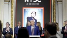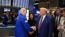 트럼프, 뉴욕 증시 개장 종 울리며 '금의환향'