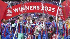 ▲ 크리스털 팰리스의 FA컵 우승 세리머니 장면 지난 시즌 잉글랜드축구협회(FA)컵 우승팀인 크리스털 팰리스가 새 시즌에 유럽- 2025.08.12 08:08