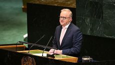 지난 22일(현지시간) 미국 뉴욕 유엔본부에서 앤서니 앨버니지 호주 총리가 연설하고 있다. [EPA 연합뉴스 제공] 도널드 트- 2025.09.24 14:17