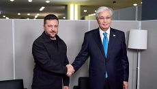 (서울=연합뉴스) 유창엽 기자 = 카심-조마르트 토카예프 카자흐스탄 대통령이 뉴욕 유엔 총회를 계기로 볼로디미르 젤렌스키 우크- 2025.09.24 11:33