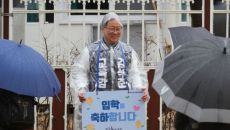부산교육감 재선거에 출사표를 던진 김석준 예비후보가 4일 입학과 개학을 맞은 학교를 방문해 학생들에게 새학기 시작을 축하하는- 2025.03.04 13:50