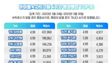 [텐아시아=류예지 기자] 가수 임영웅이 아이돌차트 평점랭킹에서 105주 연속 1위를 차지하며 독주하고 있다. 31일 아이돌차트- 2023.03.31 12:59