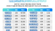 가수 임영웅이 10월 4주차 아이돌차트 평점랭킹에서 최다득표자에 올랐다. 아이돌차트에 따르면 지난 10월 28일부터 11월 3- 2022.11.04 11:23