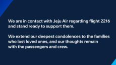 제주항공 ‘무안공항 추락사고’에…“탑승객·유가족께 애도·사과, 모든 노력 다할것”