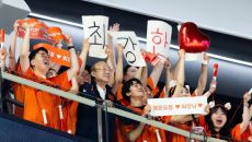 "더 높은 비상 기대" 김승연 회장, 준우승 한화이글스에 '오렌지색 아이폰' 선물