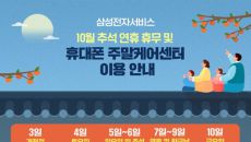 전국 9개 주말케어센터 사전 예약 후 이용 가능 "긴급 수리 수요 대응" 삼성전자서비스가 3~7일 이어지는 추석 연휴 중 5일- 2025.10.01 10:40