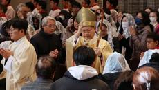 [서울=뉴스핌] 사진공동취재단 = 성탄절인 25일 서울 중구 명동대성당에서 열린 성탄 대축일 낮 미사에서 신도들이 기도 하고- 2025.12.25 13:38