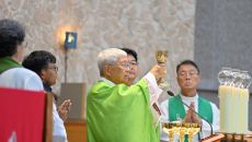 (서산=연합뉴스) 한종구 기자 = 방한 중인 교황청 성직자부 장관 유흥식 추기경은 6일 오전 충남 서산 해미국제성지에서 미사를- 2025.07.06 14:38