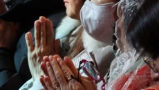 명동성당에서 기도하는 신도들... 성탄 대축일 낮 미사