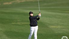 ▲ 리슈잉(중국)이 7일 경기 파주 서원힐스 컨트리클럽에서 열린 '대보 하우스디 챔피언십' 1라운드 9번 홀에서 세컨드샷을 하- 2025.11.07 17:37