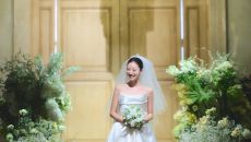'혼전임신' 김지영, 본식서 결국 배 가렸다…부케로 사수한 'D라인' 눈길