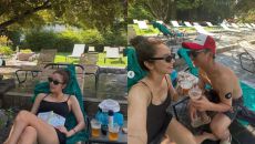 손담비, 출산 4개월 차 맞아? 파격 수영복 자태→♥이규혁과 러브샷
