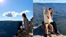 이시영, '임신 8개월' 만삭인데 절벽 끝에 앉아 '미소'..'위험천만' 근황
