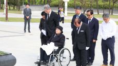 ▲ 고(故) 노태우 전 대통령 묘역을 참배하는 다이빙 주한중국대사(좌)와 노 전 대통령 아들 노재헌 동아시아문화센터 이사장 다- 2025.08.20 11:40