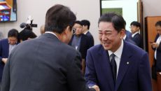 농해수위 국감장 찾아 의원들과 인사하는 김병기 원내대표