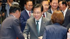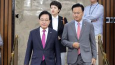 [서울=뉴스핌] 윤창빈 기자 = 송언석 국민의힘 원내대표, 진종오 의원이 1일 오전 서울 여의도 국회에서 열린 상임위원장 및- 2025.10.01 09:55