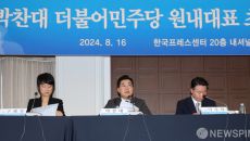 [서울=뉴스핌] 양윤모 기자 = 박찬대 더불어민주당 당대표 직무대행 겸 원내대표가 16일 오전 서울 중구 한국프레스센터 내셔널- 2024.08.16 10:59
