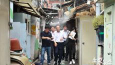 추경호(오른쪽) 국민의힘 원내대표가 20일 오후 서울 영등포구 쪽방촌을 방문해 여름철 재난안전대비 현장점검을 하고 있다. ※C- 2024.06.20 16:07