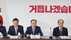 우원식 국회의장-추경호·박찬대 원내대표, 악수 마치고 자리로…